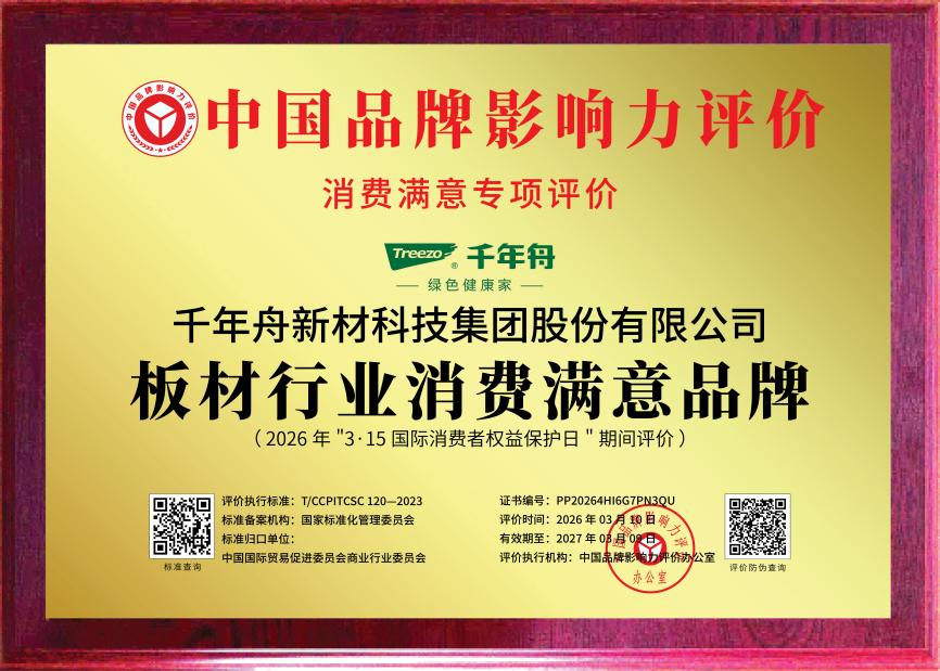 载誉315匠造满意消费!千年舟获评2026年3.15板材行业消费满意品牌